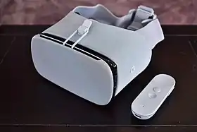 Google Daydream sont deux casques VR, un où l'on place un téléphone pour obtenir un casque de réalité virtuelle (Daydream smartphone VR[1]), et un où le casque est tout en un (Daydream standalone VR headset[2]). Ils sont tous deux équipés d'une petite manette.