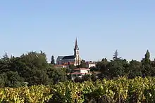 L'occupation des sols de la commune, telle qu'elle ressort de la base de données européenne d’occupation biophysique des sols Corine Land Cover (CLC), est marquée par l'importance des territoires agricoles (86,3 % en 2018), néanmoins en diminution par rapport à 1990 (91,4 %). La répartition détaillée en 2018 est la suivante : cultures permanentes (36,6 %), zones agricoles hétérogènes (27,5 %), prairies (18,6 %), zones urbanisées (10 %), mines, décharges et chantiers (3,8 %), terres arables (3,6 %)[19]. L'évolution de l’occupation des sols de la commune et de ses infrastructures peut être observée sur les différentes représentations cartographiques du territoire : la carte de Cassini (XVIIIe siècle), la carte d'état-major (1820-1866) et les cartes ou photos aériennes de l'IGN pour la période actuelle (1950 à aujourd'hui)[Carte 1].