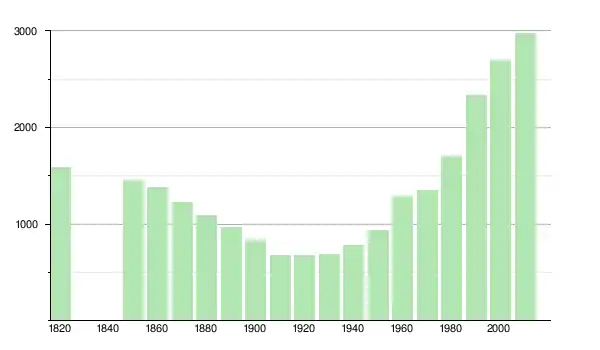 Dans la ville la pyramide des âges était 22,7 % en dessous de 18 ans, 5,3 % de 18 à 24, 25,1 % de 25 à 44, 31,7 % de 45 à 64, et 15,2 % qui avaient 65 ans ou plus. L'âge médian était 43 ans. Pour 100 femmes, il y avait 97,4 hommes. Pour 100 femmes de 18 ans ou plus, il y avait 98,5 hommes.