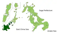 La ville de Gotō s'étend sur la moitié sud-ouest des îles Goto dans l'est de la mer de Chine orientale, au Japon. Les trois îles principales de la ville sont Fukue, Hisaka et Naru.