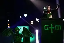 Le groupe se distingue par son jeu de scène en concert : sceptre surmonté d'un crâne crachant de la fumée, frappé sur le sol pour marquer le tempo, maquillage, escabeau avec la bannière G†M , etc.