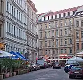 Aujourd'hui encore, certains bâtiments de la rue sont constitués de maisons de revenus représentatives situées dans des lotissements fermés, construits à partir de la fin du XIXe siècle et offrant des espaces pour de petites entreprises aux étages inférieurs[12]. Presque tous les bâtiments sont des bâtiments classés, en commençant par la maison numéro 1 (Kosmoshaus), en passant par les numéros 4 (avec une plaque commémorative pour le peintre Max Schwimmer), 6, 8 (théâtre), 9, 11, 12, 13, 15, 16, 17, 18, 19, 20, 21, 22, 23, 25, 28, 29, 30, 31, 32, 33, 34, 35, 36, 37, 38, 39, 40, 41, 44 à 45.