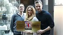 Les acteurs Lieke van Lexmond et Jim Bakkum et le réalisateur Johan Nijenhuis reçoivent le Gouden Film pour le film Rokjesday (nl).