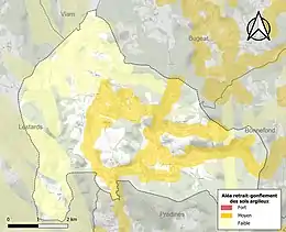 Le retrait-gonflement des sols argileux est susceptible d'engendrer des dommages importants aux bâtiments en cas d’alternance de périodes de sécheresse et de pluie. 27,2 % de la superficie communale est en aléa moyen ou fort (26,8 % au niveau départemental et 48,5 % au niveau national). Sur les 112 bâtiments dénombrés sur la commune en 2019, 39 sont en aléa moyen ou fort, soit 35 %, à comparer aux 36 % au niveau départemental et 54 % au niveau national. Une cartographie de l'exposition du territoire national au retrait gonflement des sols argileux est disponible sur le site du BRGM[16],[Carte 2].