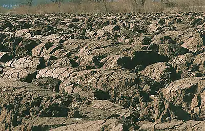 L'emploi de moyens mécanisés de plus en plus puissants dans le labourage des terres agricoles fait "saigner la terre" ; conjugué à l'épandage de fertilisants et pesticides sur plusieurs années, cette méthode issue de la révolution verte promue par la reconversion de l'industrie chimique des explosifs de guerre à l'issue du second conflit mondial a provoqué la mort des micro-organismes[25] présents dans le sol jusqu'aux vers de terre, ce qui est une cause de la régression et dégradation des sols constatée dans les pays développés. Au Brésil, João Pedro Stedile observe un effet autrement destructeur pour les sols avec la monoculture de l'huile de palme. Constatant cette dégradation, le couple d'agronomes français Lydia et Claude Bourguignon préconise[26] l'emploi du bois raméal fragmenté pour réintroduire l'humus, qui ne subsiste que dans les forêts, même sur un sol minéralisé par le traitement industriel répété.