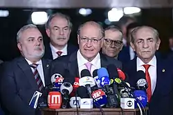 Le 13 avril 2022, la direction nationale du Parti des travailleurs (PT) a approuvé la nomination de l'ancien gouverneur de São Paulo Geraldo Alckmin (PSB) au poste de vice-président sur la liste qui participerait à l'élection présidentielle cette année-là[3]. Le ticket Lula/Alckmin a été officialisé le 7 mai, dans une coalition regroupant le PT, le PSB, le PCdoB, le Parti vert et la Fédération PSOL REDE[4],[5]. La coalition de partis est la plus nombreuse enregistrée parmi tous les candidats en lice et de l'histoire, la candidature de Lula ayant le soutien formel d'une alliance de neuf partis[6].