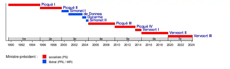 Gouvernement Vervoort IIIGouvernement Vervoort IIGouvernement Vervoort IGouvernement Picqué IVGouvernement Picqué IIIGouvernement Simonet IIGouvernement DucarmeGouvernement de DonneaGouvernement Simonet IGouvernement Picqué IIGouvernement Picqué I