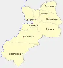 Au début du XXe siècle le gouvernement de Samara était divisé en 7 ouïezds : Bougoulma, Bougourouslan, Bouzoulouk, Nikolaïevsk, Novoouzensk, Samara et Stavropol-sur-la-Volga.