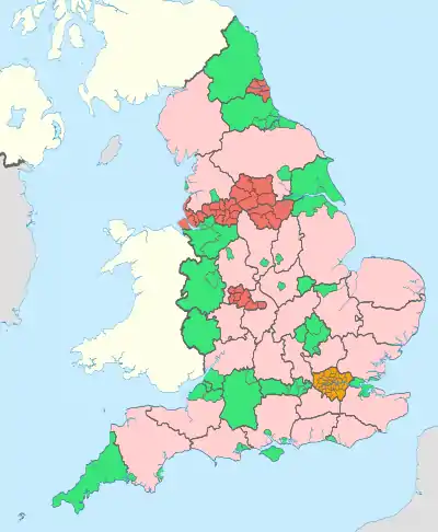 À la suite du Local Government Act de 1972, la majorité du territoire anglais est couverte par un système de gouvernement à deux niveaux composés de 27 comtés non métropolitains et 201 districts non métropolitains.