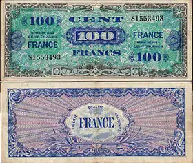 Le , les « Affaires civiles » (Civil Affairs) établissent une base à Alger pour le sud de la France ; le même mois, des billets drapeaux franc algérien sont imprimés et mis en circulation. L'organisme émetteur « Banque de l'Algérie » est remplacé par « Région économique de l'Algérie »[5]. En février, les Affaires civiles sont placées sous l'autorité des Forces expéditionnaires alliées (Allied Expeditionary Force). Dans la foulée, les négociations monétaires franco-américaines s'effondrent. Le , le poste des Affaires civiles est relevé de ses fonctions[6].
