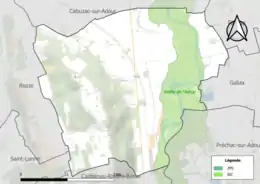 Le réseau Natura 2000 est un réseau écologique européen de sites naturels d'intérêt écologique élaboré à partir des directives habitats et oiseaux, constitué de zones spéciales de conservation (ZSC) et de zones de protection spéciale (ZPS)[Note 1]. Un site Natura 2000 a été défini sur la commune au titre de la directive habitats : la « vallée de l'Adour »[15], d'une superficie de 2 694 ha, un espace où les habitats terrestres et aquatiques abritent une flore et une faune remarquable et diversifiée, avec la présence de la Loutre et de la Cistude d'Europe[16].