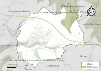 Le territoire communal comprend une ZNIEFF de type 2[Note 2] : la basse vallée de la Canche et ses versants en aval d’Hesdin, d’une superficie de 12 059 ha et d'une altitude variant de 4 à 133 mètres. Cette ZNIEFF s’étend en aval d’Hesdin jusqu’à son embouchure à Étaples et souligne la dépression synclinale isolant les hautes terres Artésiennes du vaste plateau picard[16].