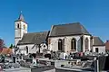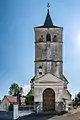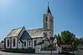 - La partie la plus ancienne, les solins de la nef, est en cailloux. Le chœur est daté du XVIe siècle, tandis que la tour a été édifiée au XVIIe siècle. La craie employée pour la construction provient des carrières de Saint-Rémy-au-Bois. Des damiers de grès et de silex agrémentent la partie basse du chœur. Pendant la Terreur, en 1793, une inscription est gravée sur la fronton du porche construit en 1775 : « LE PEUPLE FRANCAIS RECONNAIT L'ETRE SUPREME ET L'IMMORTALITE ».