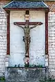 - À l'extérieur, sur le mur nord, se trouve un christ en chêne, sculpté par Pfaffenhofen, auteur des boiseries de Valloires. Il fut sauvé pendant la Révolution française par un sieur Grevet qui fut enterré dessous[44].