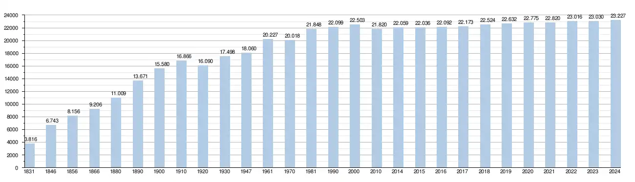 - Source: DGS , de 1831 à 1981=recensements population; à partir de 1990 = nombre d'habitants chaque 1 janvier