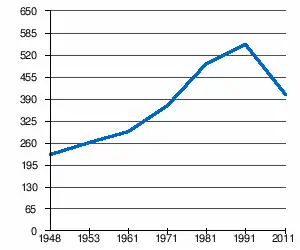 - (sq) « Évolution de la population 1948-2011 », sur pop-stat.mashke.org (consulté le ).