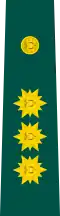 - La Colombie n'est pas membre de l'NATO, donc ce n'est pas une équivalence officielle entre les rangs militaires colombiennes et celles définies par l'OTAN. Le parallèle affiché est approximative et uniquement à des fins d'illustration.