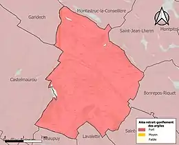 Le retrait-gonflement des sols argileux est susceptible d'engendrer des dommages importants aux bâtiments en cas d’alternance de périodes de sécheresse et de pluie. 99,6 % de la superficie communale est en aléa moyen ou fort (88,8 % au niveau départemental et 48,5 % au niveau national). Sur les 648 bâtiments dénombrés sur la commune en 2019, 648 sont en aléa moyen ou fort, soit 100 %, à comparer aux 98 % au niveau départemental et 54 % au niveau national. Une cartographie de l'exposition du territoire national au retrait gonflement des sols argileux est disponible sur le site du BRGM[26],[Carte 3].