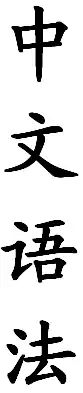 - le déterminant précède toujours le déterminé (comme notamment dans les langues germaniques, occasionnellement en français), que ce soit dans la construction d'une phrase (adverbe devant le verbe), un groupe subordonné, ou la formation d'un nom composé de plusieurs sinogrammes (ex : 中国人 / zhōngguórén, soit littéralement « milieu empire personne », soit « habitant du pays du milieu », soit « Chinois »);