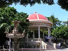 Le style du parc est le résultat des nombreuses transformations qui ont eu lieu depuis sa construction. La disposition originale présentait des miroirs d'eau dans les angles qui définissaient des axes coïncidant avec la fontaine centrale de la style baroque. La fontaine a été complétée par un temple de style éclectique et de système de construction traditionnel : actuellement, ces deux derniers éléments sont maintenus, en ajoutant quatre petits kiosques aux angles, un obélisque dédié à Rubén Darío sur le côté sud et un monument à la maternité sur le côté ouest. Lors de la dernière rénovation, son pavage a été homogénéisé avec la place des Lions et de l'Indépendance ce qui a créé une intégration urbaine complète dans cet ensemble, tout en respectant la végétation existante.