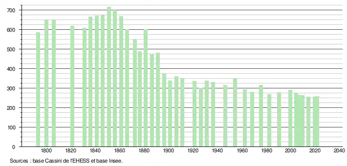 (Sources : Ldh/EHESS/Cassini jusqu'en 1999[17] puis Insee à partir de 2006[18].)