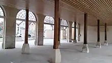 Sur la place du village se trouve le bâtiment qui accueille actuellement la mairie, les écoles et l'accueil périscolaire. Ce bâtiment fut construit en 1836 sur l'emplacement d'une ferme. Les halles étaient à l'origine ouvertes de part et d'autre pour accueillir foires et marchés. Le bâtiment abritait la salle d'audience du juge de paix, les archives, les écoles et la mairie. Ces halles ont ensuite été refermées pour des raisons d'aménagement des locaux communaux. Lors de la rénovation de l'ensemble, Les halles ont été rouvertes , elles accueillent à nouveau un marché depuis 2021. Sur le toit, une horloge datant de 1896 servait à une heure unique à l'ensemble du village. Cette horloge créée par Louis-Delphin Odobey, cadet de Morez (Jura) a été également rénovée et son mécanisme est visible dans les locaux de la maire. L'horloge, toujours en service, est remontée de manière hebdomadaire par les conseillers municipaux du village.[réf. nécessaire]