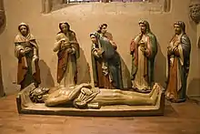 • Mise au tombeau, XVIe siècle, groupe sculpté en bois polychrome.