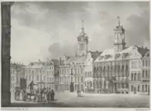 L'Hôtel de ville et à l'arrière, sur la gauche, le beffroi