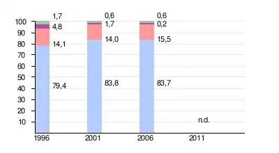 Les autochtones représentent 1,7 % de la population[20] et 1,0% des habitants font partie d'une minorité visible[21]. Les immigrants représentent 2,4 % de la population et 0,2 % des habitants sont des résidents permanents[22]. 0,6 % des habitants ne sont pas citoyens du Canada et 93,5 % sont issus de familles établies au Canada depuis 3 générations ou plus[23]. En date du , 87,4 % des gens avaient la même adresse depuis au moins un an mais seulement 61,2 % des gens avaient la même adresse depuis au moins cinq ans[24].