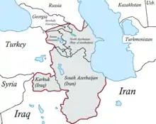 Le terme de « Grand Azerbaïdjan » est toujours utilisé dans le cadre d'initiatives politiques telles que le SANLM (CAMAH) et le Parti du front populaire pour le Grand Azerbaïdjan (en)[5]. Bien que les frontières du Grand Azerbaïdjan ne soient pas strictement définies, la plupart des sources citent les territoires suivants[6] :