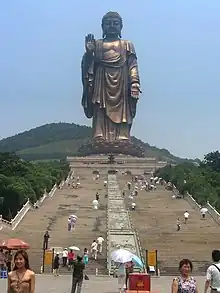 La statue du Grand Bouddha de Ling Shan représente un Amitābha (bouddha du bouddhisme mahayana et vajrayana). Haute de 88 mètres et pesant pas moins de 700 tonnes, cette statue en extérieur de bronze fait partie des dix plus grandes statues au monde.