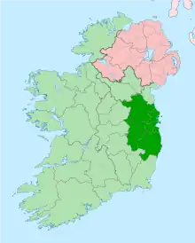 - Les trois comtés limitrophes du Comté de Dublin : Meath, Kildare et Wicklow.