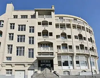 Les étages présentent des balcons à parapet de pierre. Les balcons du premier étage sont surmontés d'arcs surbaissés, ceux du deuxième étage sont surmontés d'arcs en plein cintre tandis que ceux du troisième étage sont surmontés d'un linteau plat au niveau de la partie hémi-circulaire du bâtiment (la « rotonde ») et d'un arc surbaissé au niveau de la façade située face à la mer.