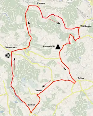 Le circuit de la course est long de 21,5 km. Il contient deux côtes. Celle entre Pfungen et Sonnenbühl (lieu-dit) est longue de deux kilomètres avec un passage à quinze pour cent et un dénivelé total de 124 m. Le dernier kilomètre est parfaitement plat et droit. Six tours sont à parcourir. Le départ est donné proche de l'Aéroport international de Zurich avec une partie en ligne de huit kilomètres avant de rejoindre le circuit[2]. Le dénivelé positif total est de 1 866 m[1].