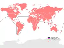 Les quatre escadres couvrent quelque 65 000 km, s'arrêtant dans une vingtaine de ports sur six continents. Cette flotte impressionnante était techniquement dépassée, alors que les premiers cuirassés dreadnought entraient en service et que le premier dreadnought de l'US Navy, l'USS South Carolina, était en voie d’achèvement. Les deux plus anciens navires de la flotte, le Kearsarge et le Kentucky, mis en service en 1900, étaient obsolètes et inaptes au combat ; deux autres le Maine et l'Alabama, avaient dû être retirés de la flotte à San Francisco à cause de problèmes mécaniques. Après réparations, l'Alabama et le Maine complèteront leur propre tour du monde en suivant une route plus courte que le reste de la flotte via Honolulu, Guam, Manille, Singapour, Colombo, Suez, Naples, Gibraltar, les Acores et le retour aux États-Unis, arrivant le , plusieurs mois avant le reste de la flotte.