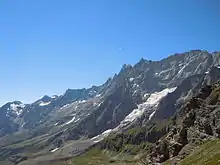 Les Grandes Murailles vues du Valpelline. Le glacier du même nom s'étend juste en-dessous.