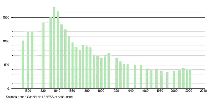 - Fiches Insee - Populations légales de la commune pour les années 2006, 2007, 2008, 2009, 2010, 2011, 2012, 2013, 2014, 2015, 2016, 2017, 2018, 2019, 2020 et 2021.