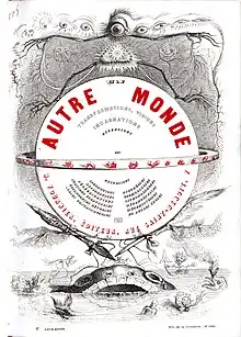 Un autre monde est un livre illustré paru en 1844. D’abord publié sous forme de livraisons hebdomadaires du 18 février au 11 novembre 1843 (36 livraisons vendues 50 centimes l’unité), il paraît sous la forme d’un livre de 296 pages en janvier 1844. Imprimé par le libraire-éditeur Henri Fournier sur papier vélin fort, il contient 220 gravures conçues par Grandville, ainsi qu’un texte écrit par Taxile Delord[27].