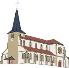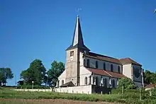 L'église, de style néogothique, achevée vers 1876 en intégrant un clocher plus ancien. Elle a été construite sur un plan basilical : bas-côtés plus bas que la nef centrale percée de fenêtres hautes. L'orgue a été construit par Jaquot-Jeanpierre & Cie en 1894[22].