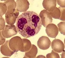Un groupe de leucocytes (globules blancs du sang) appelés granulocytes sont caractérisés par leurs granules qui jouent un rôle important dans le système immunitaire. Les granules de certains d'entre eux, par exemple les lymphocytes NK, contiennent des substances susceptibles de conduire à la lyse des cellules environnantes. Les granules des leucocytes sont libérés en réponse à des stimuli immunologiques au cours d'un processus appelé dégranulation ; ils sont classés en granules azurophiles (en) et granules spécifiques (en).