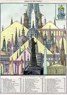 Par ailleurs, ne sont pas considérées[3] comme gratte-ciel certaines tours comme la tour Eiffel (1889), car il s'agit d'une tour d'observation et non pas d'un immeuble constitué d'une juxtaposition d'étages.