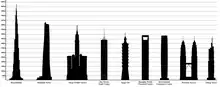 Les bâtiments dont le nom est en gras ont détenu le titre de plus haut gratte-ciel du monde à leur achèvement.