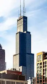 Arrêté par la crise économique des années 1930, le mouvement de construction de gratte-ciel reprend dans les années 1960, à New York et à Chicago et, à un moindre niveau, dans d'autres villes du monde. Les tours jumelles du World Trade Center (WTC) à New York deviennent le plus haut gratte-ciel du monde en 1973 avec 417 mètres, elles sont dépassées la même année par l'achèvement de la Willis Tower (connue sous le nom de « Sears Tower » jusqu'en 2009) à Chicago qui mesure 442,3 m. C'est une véritable bataille qui est engagée entre ces deux villes.