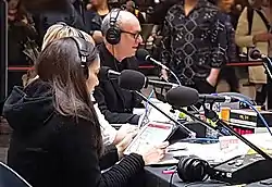 Alain Gravel en train d'animer son émission à la Gare Centrale de Montréal, en 2017.