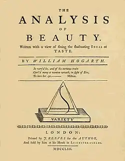 - Cette estampe est le portrait-manifeste de son traité sur la Ligne de beauté (L'Analyse de la beauté), ici présent sur la palette[31].