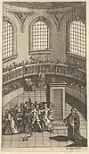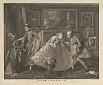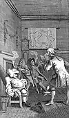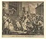 - Selon Burke et Caldwell, cette estampe a été gravée contre la volonté de Hogarth par un inconnu[40].