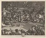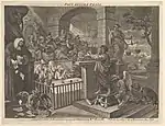 - Estampe qui n'a pas été publiée du vivant de Hogarth[41].