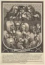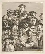 | A Chorus of Singers or The Oratorio (Chœur de chanteurs ; billet de souscription pour Contemporains en conversation nocturne) | 1732 | 173 × 154 mm | Eau-forte (trois états) | British Museum | ![]() Voir catégorie correspondante sur Commons. |