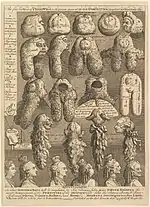 | Crowns, Mitres, Maces, etc. (Couronnes, Mitres, Masses, etc.)[alpha 14] | 1754 | 215 × 188 mm | Eau-forte (quatre états) | British Museum, Metropolitan Museum of Art | ![]() |