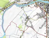 L'occupation des sols de la commune, telle qu'elle ressort de la base de données européenne d’occupation biophysique des sols Corine Land Cover (CLC), est marquée par l'importance des territoires agricoles (68,6 % en 2018), néanmoins en diminution par rapport à 1990 (80,6 %). La répartition détaillée en 2018 est la suivante : terres arables (52,4 %), zones urbanisées (24,8 %), prairies (16,2 %), eaux continentales[Note 4] (5,8 %), zones industrielles ou commerciales et réseaux de communication (0,8 %)[16]. L'évolution de l’occupation des sols de la commune et de ses infrastructures peut être observée sur les différentes représentations cartographiques du territoire : la carte de Cassini (XVIIIe siècle), la carte d'état-major (1820-1866) et les cartes ou photos aériennes de l'IGN pour la période actuelle (1950 à aujourd'hui)[Carte 1].